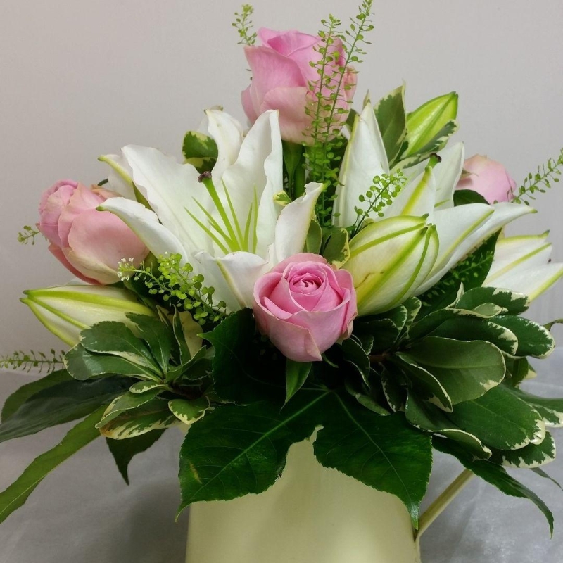 Pink Rose & White Lily Arrangement